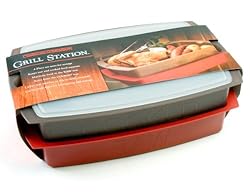 The Charcoal Companion versatile Grill Station™ marinates, stores, chills and serves food and keeps accessories close at hand. The Grill Station™ includes four essential pieces in the set to keep raw and cooked food separate while grilling. One large tray is clearly marked RAW. One large tray is clearly marked COOKED, to eliminate confusion and cross-contamination. Lid fits both food trays. The tool caddy try hooks to the food tray edge for use, fits inside tray for storage. Ridges on the inside of the food trays allow the marinades to flow freely for even marinating. Tray contents and date may be labeled with a dry-erase pen for convenience. The Grill Station™ may also be used to keep chilled food cold while serving, by filling one tray with ice and setting the other tray containing the chilled food on top of the ice tray. Food trays measure 16.75-inch by 11-inch by 2.625-inch.