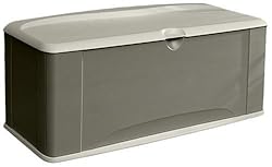 Sit down and enjoy the uncluttered view after you've picked up the deck, patio or yard and stored all the toys, tools, grilling accessories away inside this deck box from Rubbermaid. Equipped with a comfy seat molded into its hinged lid, Rubbermaid's extra large deck box is a durable, well thought-out storage unit great for storing a wide variety of items indoors or out. With inner dimensions of 56-1/2 by 21 by 22-1/2 inches (width by depth by height), the unit nestles into the deck corner without protruding over the rail and offers 16.2 cubic feet of storage space.Its lockable lid (lock not included) keeps little hands away from sharp grilling accessories and fuels. And, assembly is quick and easy with panels that snap together in minutes. Its sandstone colored lid and floor and olive steel colored panels blend with just about any venue. The hinged lid design ensures great accessibility and is built to last. Like all Rubbermaid deck boxes, this one is maintenance-free and crack-resistant in cold temperatures. There's no easier way to tidy up the deck, garage, shop, patio or greenhouse without eating up valuable floor space!