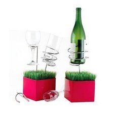 A weather resistant solution to the frustrating task of balancing glasses and spilling wine . Push these sticks into the ground anywhere and enjoy the "spill free" outdoor wine and dine experience.