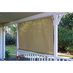 (More customer reviews)The fabric is quite acceptable. It does exactly as is represented. However, the design needs much improvement. With the least amount of wind, i.e., breeze, the shade will not properly roll up. Also, the straps holding the pole in place (at the bottom of the shade) easily slip off.The shade and the pole are then free to do as they please; in my case, the pole fell to the ground, and the shade flapped in the breeeze. The pole however, is quite capable of smashing into anything within reach. A fine product for a zero wind area.