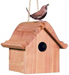 The Perky-Pet Wren Home features a Dutch Style roof, a hanging rope and is 6.5 tall with a 2 hole for bird entry. Made from aromatic cedar (weather resistant and insect repelling), the rugged construction will provide you with years of bird watching enjoyment. Made from non-endangered timber.