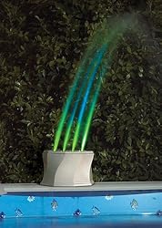 Watch this exciting shower of rainbow colors in your pool or pond with the AquaGlow Rainbow Fountain!The Rainbow Fountain shoots continually changing color-lit water.This innovative product runs off water pressure - a garden hose or the pool return line provides all necessary power.Very easy to operate. No batteries or electrical power required. Tuscan-inspired base lends European sophistication and drama.For use for in-or above-ground pools.