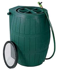 Keep the veggies growing and the grass green this summer without increasing the water bill with this environmentally friendly water barrel from Achla. Compact enough to fit on a deck or patio, this water barrel catches and stores rainfall and roof runoff to store 54 gallons of water for irrigating or washing the car when the clouds are long gone. The barrel features a debris screen that keeps out leaves, bird droppings, and other waste. For optimal safety and peace of mind, the lid on this rain barrel is child-proof. Designed with an overflow tube to divert excess water away from basements and footpaths, a convenient shut-off valve at the end of the overflow hose lets you begin storing water again with the flip of a switch. The barrel measures 32 by 24 inches (height by diameter). An easy to use linking kit is included for linking this barrel with other barrels (if purchased) for additional capacity. Made of durable, UV-stable polyethylene the barrel is built for years of solid use and good looks.