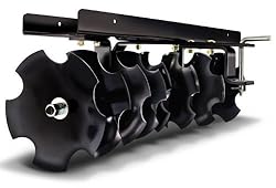 (More customer reviews)If you have a very large job to do you may want to look at a bigger disc harrow. I had about 5000 sq. ft. so it was big enough for me. The product assembled easily and is very well made. Each set of four discs (there are two sets) has an adjustment for the angle and spacing between the sets. The discs are assembled onto a large shaft and are separated by spacers one of which is the bearing journal for the shaft assembly. There is a grease fitting on each bearing journal to prevent wear.