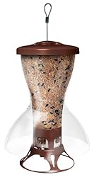 (More customer reviews)I've had this feeder for several years. It's the most widely used feeder I have other than the thistle feeder. This feeder keeps the red winged black birds and other "seed hogs" from eating all of the seed, but allows the smallest birds such as finches to eat. It only takes a few days for the finches to figure out how to get under the cover. Once they do, they'll use this feeder more than others. It also keeps snow and rain out of the seed (a big plus in Minnesota).