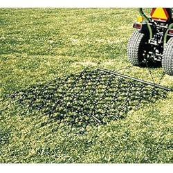 (More customer reviews)This product is wonderful I was so glad that I ordered it after having over thirty very tall trees removed from my yard I was faced with hand raking nearly an acre of land. The entire area was full of mounds of wood chips that needed to be raked flat and used to fill the many tire tracts left from the heavy equipment. With the Harrow Rake I just drove around the yard on my lawn tractor and let it do the work. It raked the mounds down and filled all the depressions with no hard work on my part and it did not tear up the grass.