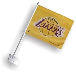 This Buy is for a brand New NBAofficially licensed Yellow two sidecar Flag with lakers in purple andgold in the middle. 11.5 inches by 14.5 inches heavy Duty car flag made of a durable washable polysatin material and weather Resistant this Lakersflag can be easily attached to any window.The flag is mounted on a 21 " inch durable white pole Please take a moment to view all pictures if you have any questions please feel free to ask because we do not offer any refunds returns and or exchanges thank you.